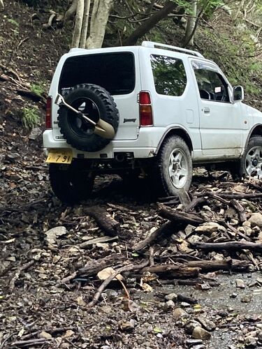 ジムニー遊びVOL.48 阿波 Googleマップ航空写真で、気になる場所を発見!!! これは、行かねば。自宅から約130Km。一般道で、約3時間30分。遠いなくじけずに行けるやろか・・・ 目的の入口に到着。 入口の路面状態です。 えっつ?タイヤが気になり…